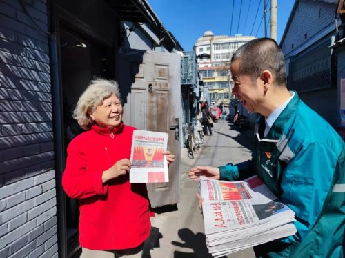 投递员将最新两会消息送达订户...
