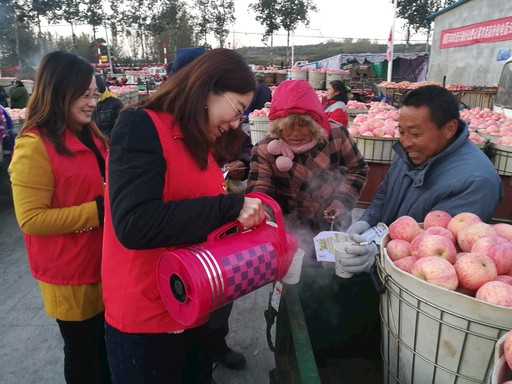 10~11月是山东省栖霞市苹果的收购旺季,也是基层金融业务和包裹快递业务的发展旺季。为此,山东省栖霞市邮政分公司组织党员突击队支援网点工作。在活动中,党员佩戴党徽、身着红色“党员志愿者”马甲,每天清晨五点到重点乡镇的苹果交易市场,支援支局的工作。有的党员为果农送上一杯暖手、暖身、更暖心的热水;有的党员帮助果农搬苹果、抬筐子。这些举措让基层群众感受到了党员的先锋模范作用,拉近了党员与群众的距离,树立了“人民邮政为人民”的良好形象。  □张红霞  摄影报道