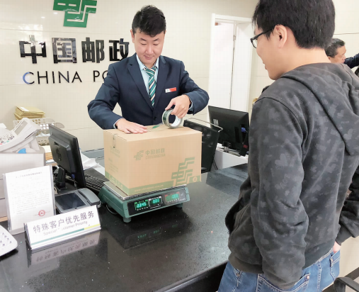 按照集团公司安排,省分公司于7月份开始在全省范围内开展了绿色邮政建设行动。绿色包装工程作为绿色邮政建设行动的三大工程之一,是绿色行动的重中之重,省分公司各部门紧密配合,各市分公司抓紧落实,已取得积极成效。截至目前,省分公司已在全省所有邮政网点开展绿色包装宣传培训,推广使用绿色新标准包装箱、全叠盖免胶带包装箱及45mm窄胶带,开展包装减量计划、胶带瘦身计划、循环回收计划,切实减少包装耗材,减轻包装重量,推动绿色环保低碳工作。图为青岛市分公司营业局香港中路支局营业员用绿色包装箱为客户办理包裹寄递业务。