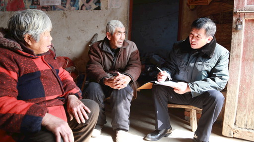 今年1月,殷勇到泗洪县归仁镇村庄走访调研独生子女家庭养老问题。张成  摄