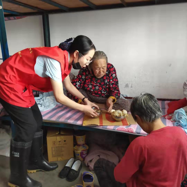 寿光纪台支局员工到纪台镇受灾安置点为灾民做饭。