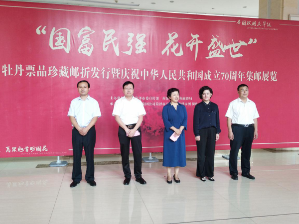 国庆节前夕,《国富民强、花开盛世》牡丹票品珍藏邮折发行活动在菏泽市图书馆举行。