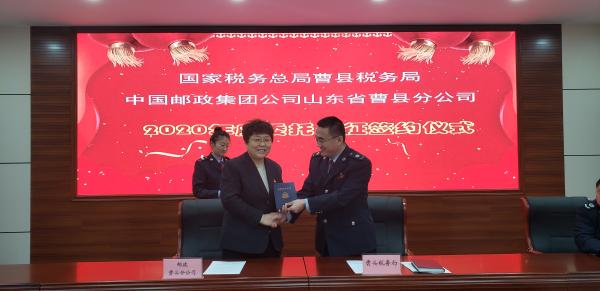 12月27日,曹县分公司与县税务局举行委托代征签约仪式,双方签订了2020年度委托代征协议,协议规定了代征税种和代征范围等。 2019年,曹县分公司代开增值税普通发票2.1万笔,开票金额6.1亿元,代征税款近2500万元。2020年,根据协议,双方进一步提升业务规模,加强了个体税收和临时经营户等零散税源管理。双方还就代收医疗保险等便民服务项目进行了洽谈。