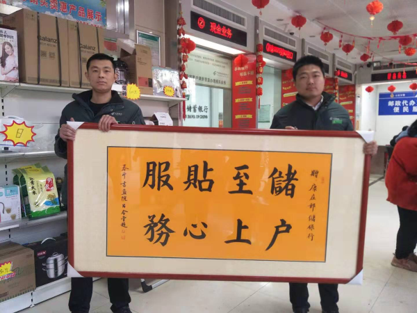 1月11日,客户吕先生将一块写有“储户至上,服务贴心”的书法牌匾送到了临清康庄支局,以此感谢康庄支局对客户的用心服务。