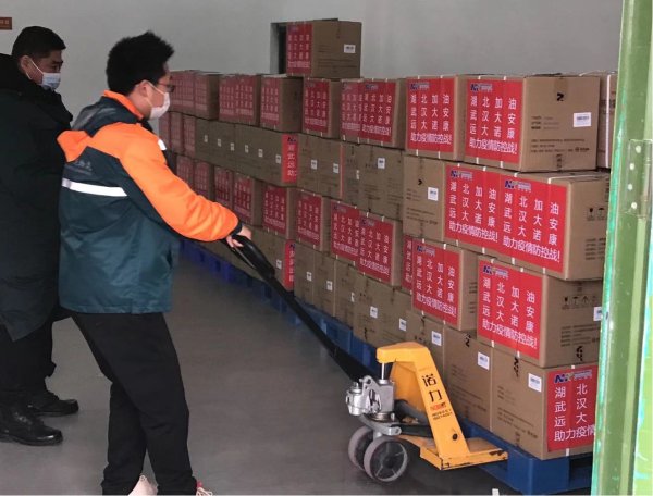 正月初一到初九,蓬莱分公司共收寄包括方便面、消毒液、洗手液、口罩、苹果等在内的邮件6万余件,最多的一天收寄超过10000件。这些物品有的要寄往武汉,有的要送到商超,其中包括蓬莱诺康药业向武汉红十字会捐赠的5万余支、169件、价值100余万元的利巴韦林喷雾剂。