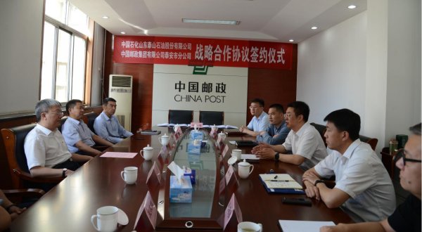 5月27日下午,泰安分公司与中国石化山东泰山石油股份有限公司签署战略合作协议。泰安分公司总经理姚志刚和泰山石油总经理宋鹏代表双方签署战略合作协议。根据协议,双方基于各自核心竞争力,建立长期的战略合作伙伴关系,通过优势互补、资源共享,在市场拓展、油品供应、金融保险、物流配送、邮政服务等方面开展深入合作,实现共同发展。