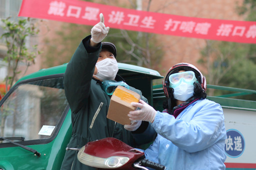自疫情阻击战打响以来,被江苏省金湖县邮政分公司员工誉为“邮嫂”的王红,退掉本已预订好的车票,留下来与丈夫杨和仁一起投递邮件,夫妻二人并肩战“疫”。□吉尔云  摄