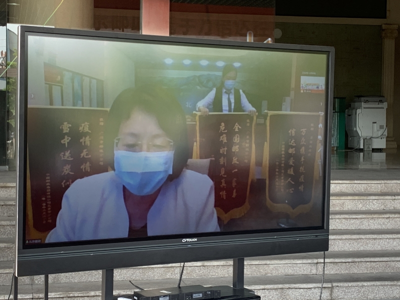 仪式上,广州邮政与北京邮政通过现场电视大屏,进行了远程网络连线。“虽然天各一方,但视频连接着你我。”北京邮政副总经理王艳十分感动,她在视频中展示了三面锦旗,向广州表示,“疫情无情人有情,雪中送碳是亲人!”