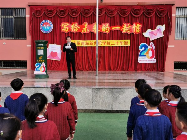 10月26日,青岛市邮政分公司集邮与文化传媒部应邀参加青岛新世纪小学20周年校庆启动仪式。本次活动的主题为“写给未来的一封信”,旨在增加学生对信函的认识和提升他们对传统文化的体验感。