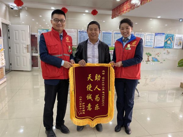 11月8日一大早,家住济南市锦屏家园的尹先生来到济南市邮政分公司龙鼎支局,为邮政工作人员送上一面鲜红的锦旗,特别感谢该支局员工崔心波和支局长郑月月,帮助他及时发现并堵截诈骗,保护了他的账户资金安全,避免了财产损失。