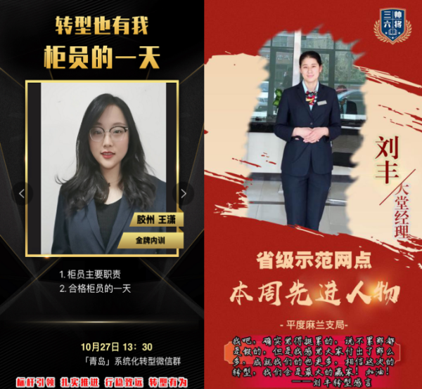 强化支撑保障和专业队伍建设。通过“转型周明星”打造网点骨干队伍;通过“每周一讲”打造督导员内训师队伍;通过“常态化考试”打造金融专业队伍,同时对各关键岗位开展线上线下培训,全面提升各岗位员工专业水平。转型行为指标在全省名列前茅,其中智能厅堂使用率和业绩清分使用率居全省首位,每日计划对接率达到95%以上,VIP大客户对接率达到100%。该分公司还制定下发网点转型及营销技巧话术类工具包40余个,有效提升网点服务能力。
