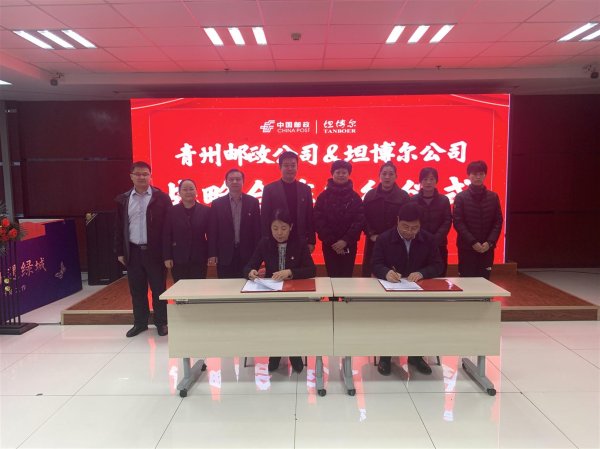 12月18日下午,青州市邮政分公司与坦博尔服饰股份有限公司举行战略合作签约仪式。双方就寄递业务合作以及即将开展的金融等业务合作进行了深入细致的交流。