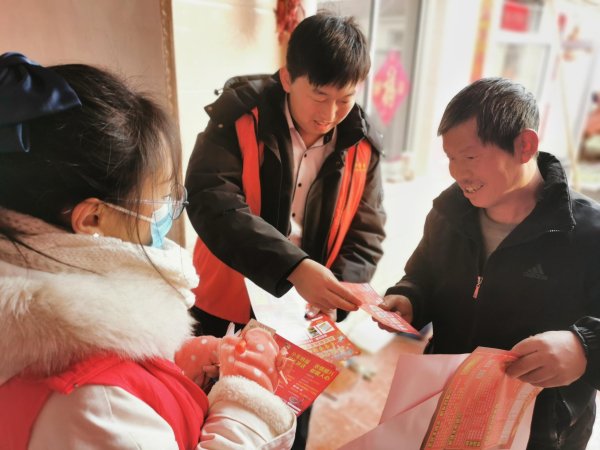 自1月11日开始,招远市邮政分公司组织干部员工成立“送福到万家突击队”,深入村庄为村民送去福字,同时宣传邮政储蓄产品和政策,助力首季开门红战役目标的实现。 队员们身着红色小马甲,每天早晨7点半集合,开启每日走街入户、走访宣传的征程。在支局经理的带领下,突击队员们每日重点走访2至3个村庄,虽然当地白雪铺地,仍然不能阻挡他们发展的激情和脚步,受到当地居民的欢迎。