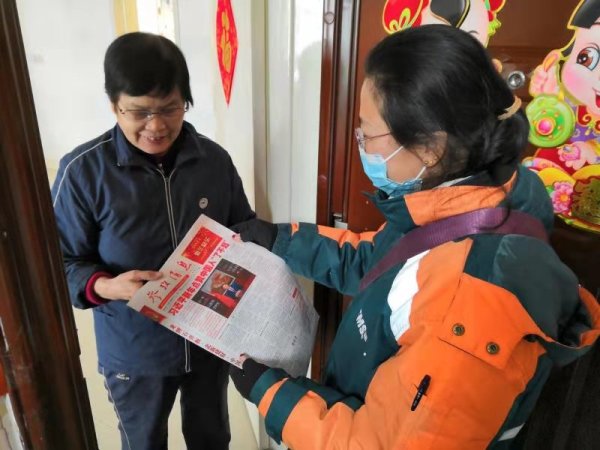 图为刘建敏为客户投递新年度首份《参考消息》