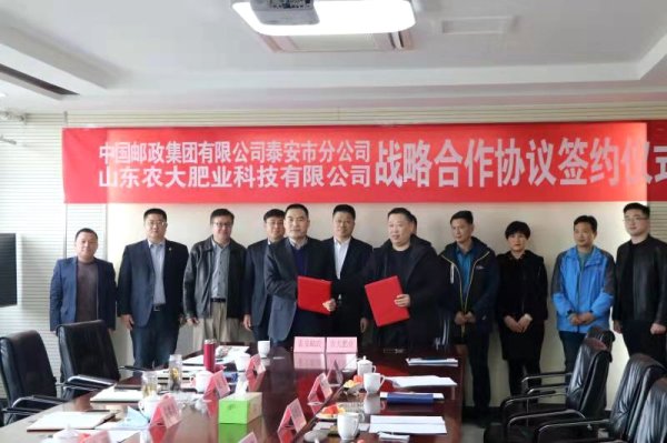 为进一步增强市场竞争力,发挥各自领域的丰富经验与资源优势,1月21日,泰安市邮政分公司与山东农大肥业科技有限公司签署战略合作协议。双方相关领导出席签约仪式。