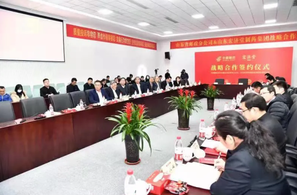2月26日上午,山东邮政和宏济堂制药战略签约仪式在宏济堂制药举行,双方携手共促我省中医药和大健康产业快速发展。