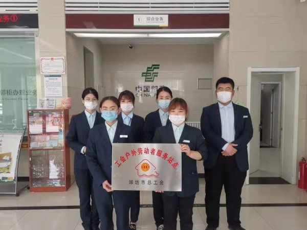 近日,潍坊市总工会“户外劳动者服务站点”落户坊子区邮政分公司车留庄支局,对外提供公益服务。该支局充分利用现有场地和资源,为过往的环卫工人、的哥的姐、农民工散工、交通警察等户外劳动者提供热饭、饮水、歇息和如厕等服务。该支局在显眼位置安装醒目的驿站标牌,张贴宣传海报,公布服务承诺,让户外劳动者能够心安理得进入驿站歇脚。同时配置了桌椅、书报架、饮水机、微波炉、医药箱、多功能电源插座等设施设备,保证了户外劳动者“渴了能喝水、热了能乘凉、冷了能取暖、累了能休息、伤了能急救”,极大地方便了户外劳动者。在他们休息期间,大堂经理还会普及一些金融小知识,提高他们的金融风险意识,受到广大职工群众及社会各界的欢迎与好评。