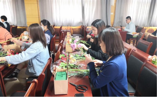 活动中,该分公司特别邀请著名花艺师现场讲解花艺知识,剪裁示范、插花表演。护士们兴致盎然、跃跃欲试,大家从取材、剪叶、构思开始,逐步完成了插花作品,看着通过自己双手亲手制作成的插花作品,护士们的脸上洋溢着喜悦的笑容。