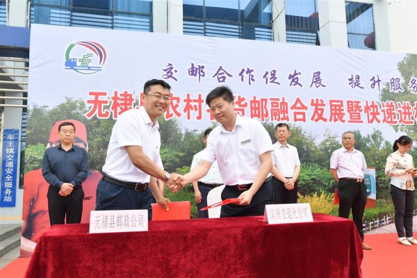 无棣县邮政分公司与交运集团七公司现场签订合作协议。启动仪式结束后,与会人员一同参观了车王镇综合运输服务站、李辛村村级“快递进村”服务站。