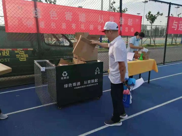 为更好履行企业环保责任,宣传推广绿色邮政生活理念,引导消费者践行绿色低碳的用邮生活方式,营造“便捷快递人人享有,绿色包装人人有为”的良好氛围。近日,滨州市邮政分公司积极借助与滨州联通联合举办职工运动会的契机,开展“绿色寄递,从我做起”快递包装有礼回收再利用活动。