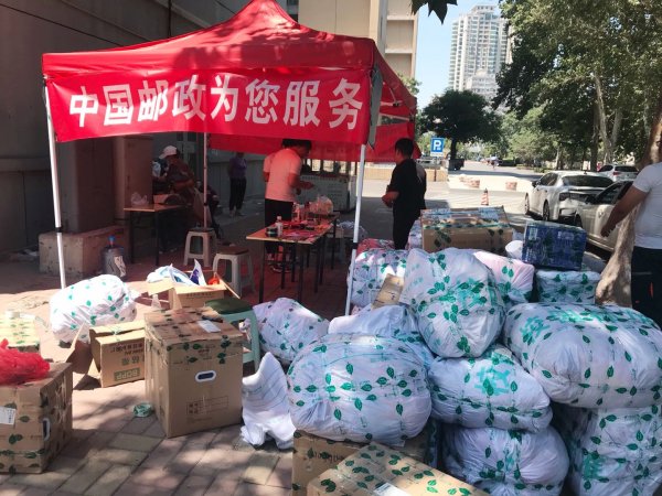 现场,在炎炎烈日下,那顶写着“中国邮政为您服务”的红色帐篷十分耀眼。邮政工作人员马不停蹄地收寄着包裹,从帮助学生将包裹从宿舍运送到临时邮局收寄点,到指导学生扫码下单,再到打包称重计费,最后将包裹送上邮车,每个环节,邮政工作人员都认真尽职,尽管他们汗流浃背,当面对前来询问的学生们,他们始终面带微笑。