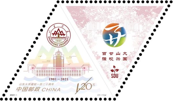 据悉,中国邮政定于2021年10月15日在山东大学中心校区举办《山东大学建校一百二十周年》纪念邮票首发仪式活动。发行纪念邮票一套1枚,邮票面值为1.20元。