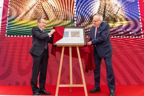 《中墨建交五十周年》纪念邮票在墨西哥驻华大使馆首发