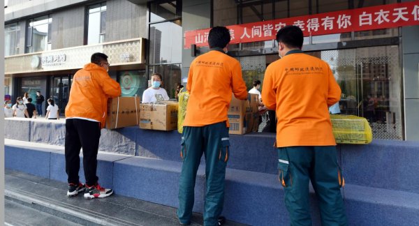 济南市中区分公司齐州路支局经理刘长林加入“物资配送志愿者队”,利用休息日为辖区居民配送物资。