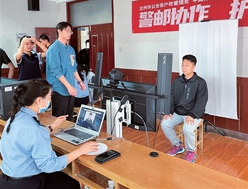 图为近日在兰州西北中学,邮政工作人员和民警正忙碌着为考生们办证。