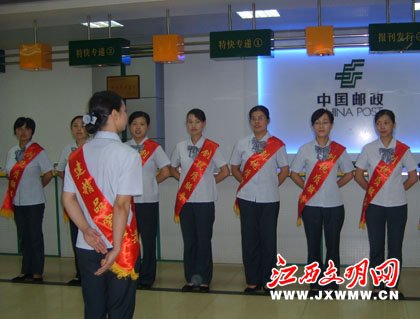 每天清晨、当您迎着朝霞、走过吉安市邮政局鹭洲营业厅门口的时候,可以看到十几名营业员排着整齐的队伍,庄严宣誓。这,只是吉安市邮政局“建精品窗口、创优质服务”的一个小缩影。