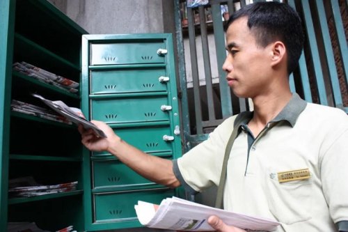 王国华在投递信件报刊