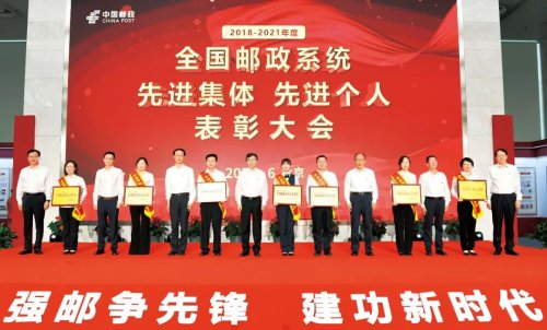 强邮争先锋,建功新时代。6月27日上午,2018-2021年度全国邮政系统先进集体、先进个人表彰大会隆重召开。4年一次的表彰大会,是全国邮政系统规模最大、影响最广泛的表彰活动,本次大会对142个先进集体和203名先进个人进行隆重表彰。中国邮政集团有限公司党组全体成员出席,党组书记、董事长刘爱力发表讲话,代表集团公司党组向受到表彰的先进集体和先进个人致以诚挚祝贺,向长期以来奋斗在各个岗位上的广大邮政干部职工致以亲切慰问,强调要大力弘扬劳模精神、劳动精神、工匠精神,用榜样的精神力量,激荡起广大邮政干部职工强邮争先锋的强劲音符,谱写出广大邮政干部职工建功新时代的华彩篇章。集团公司副总经理康宁宣读《中国邮政集团有限公司中国邮政集团工会关于表彰2018—2021年度全国邮政系统先进集体、先进个人的决定》,副总经理王俭主持。