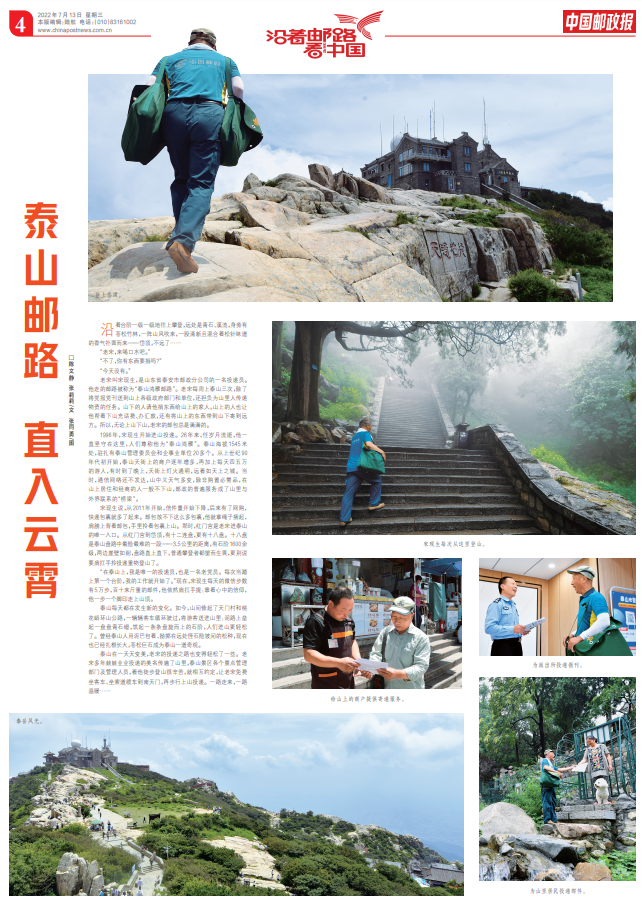 泰山邮路,传递着邮政人的精神和力量,是“忠贞不渝、使命必达”的战邮红色基因,是“登高必自”的不懈进取,也是“山再高,往上攀,总能登顶;路再远,走下去,定能到达”的新时代担当。