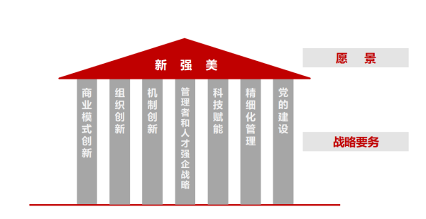 实现企业愿景,要以“服务客户”为中心,以“深化改革、创新突破、专业协同、支撑一线”为抓手,以“共赢、贡献、成长、和美”为目的,从业务、利润、机制、管理、科技、硬件和软件、干部和人才、员工薪酬福利等方面明确抓好“七项”企业发展战略要务,推动企业高质量发展。