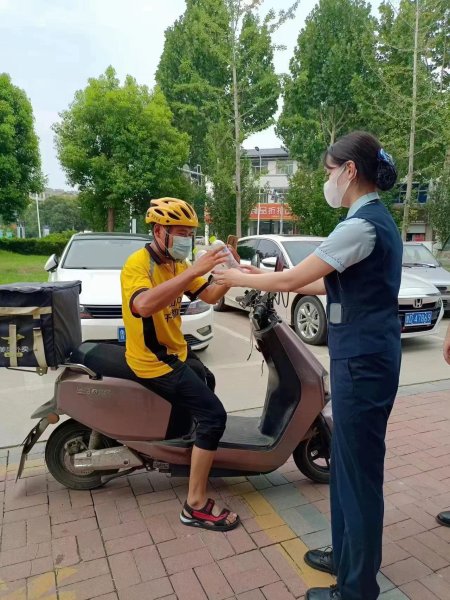 近日,惠民县持续的高温天气,不仅给广大市民朋友们的日常出行造成了极大不便,对于需要进行露天作业的环卫工人、外卖小哥来说,更是带来了严峻“烤”验。为积极践行央企的社会责任,山东省惠民县邮政分公司辛店支局主动购置纯净水、遮阳伞、凉水杯等物品,在网点周围开展“送清凉”服务,为高温下的劳动者们,搭起了爱心驿站。