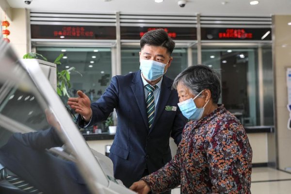 行动不方便的老人来到网点,他们会主动上前帮扶。