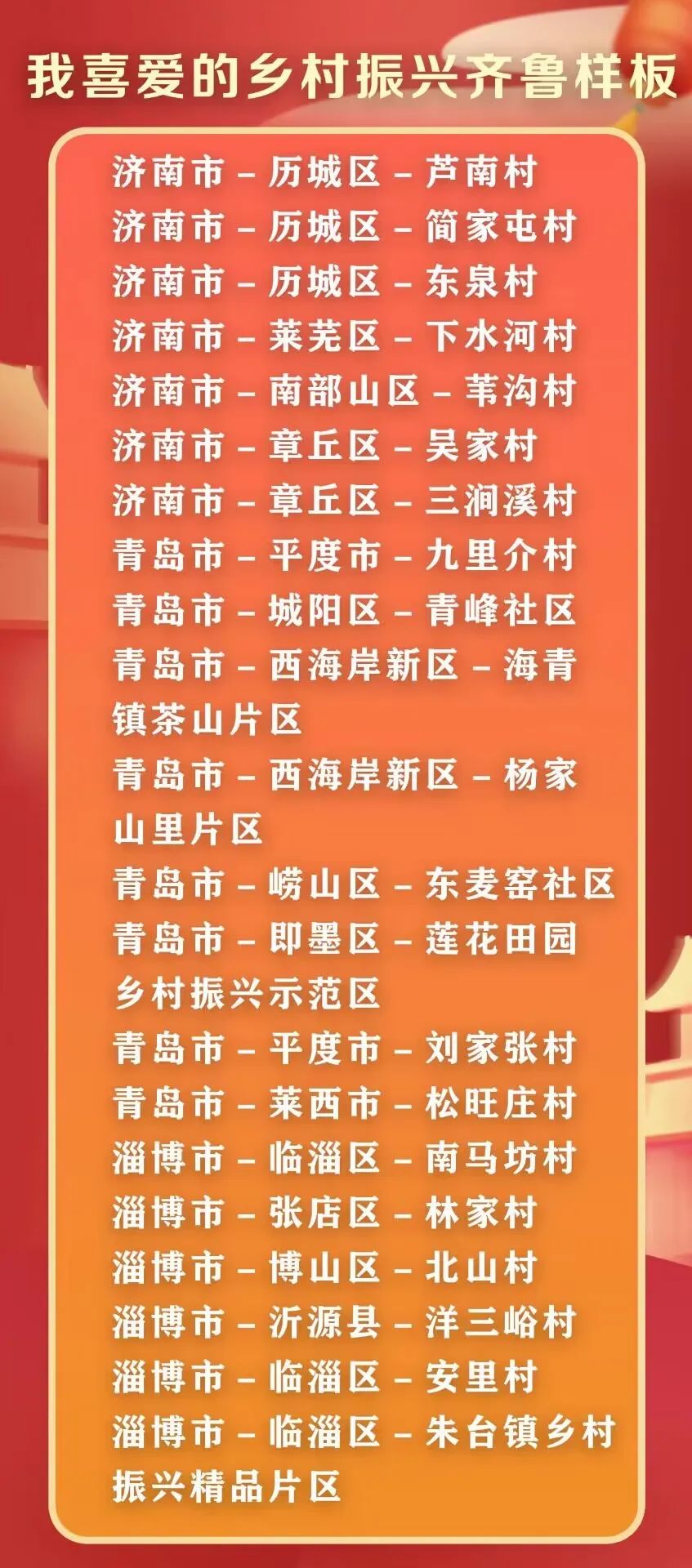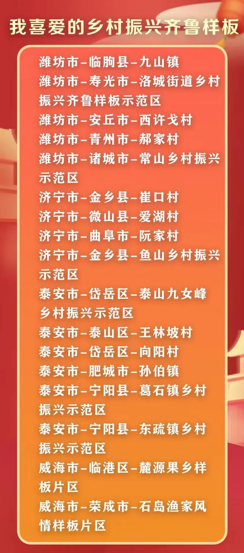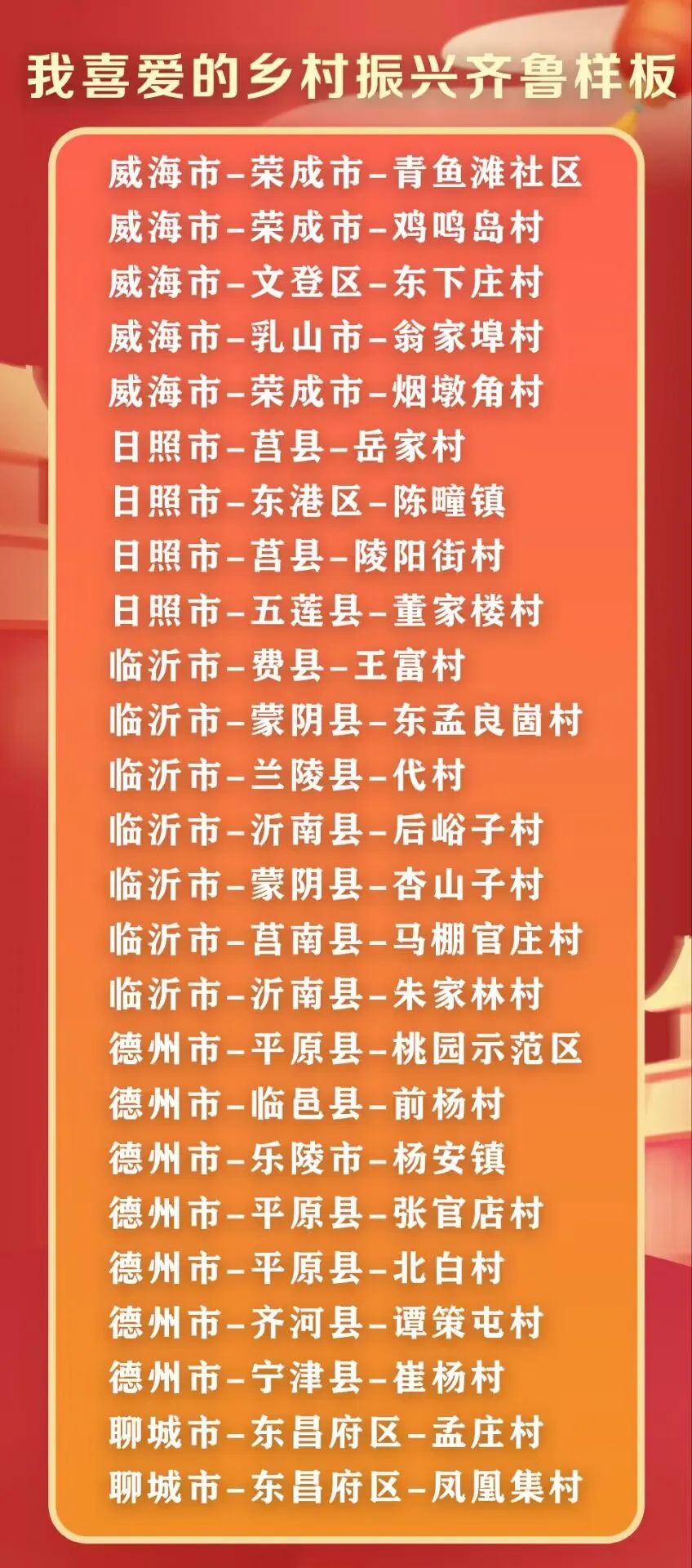 附:“我喜爱的乡村振兴齐鲁样板”名单