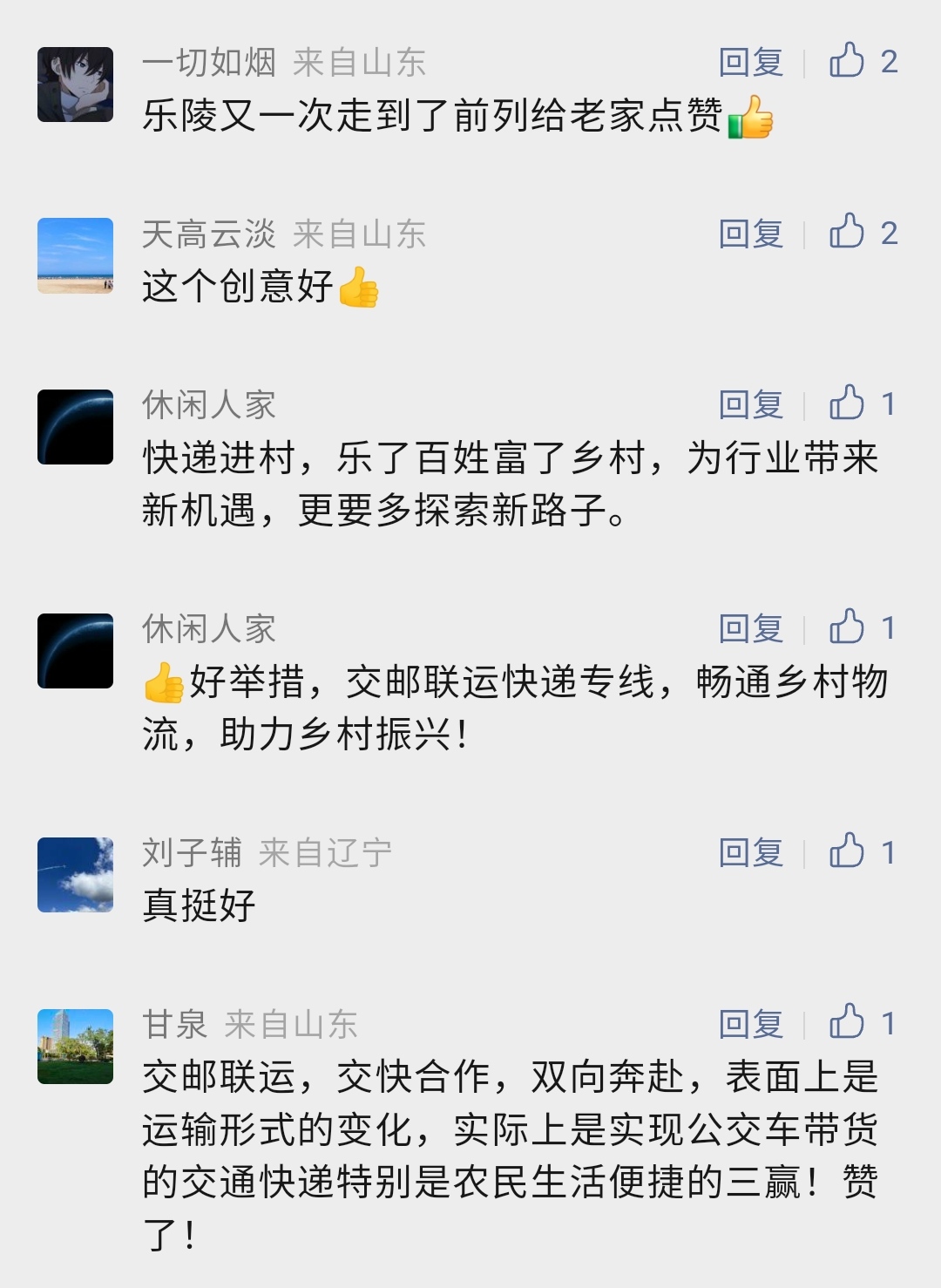 2021年,山东省交通运输厅下发《关于进一步推动农村客货邮融合发展的通知》。从此,乐陵市公交公司与邮政公司“牵手”,公交承揽邮件配送业务。