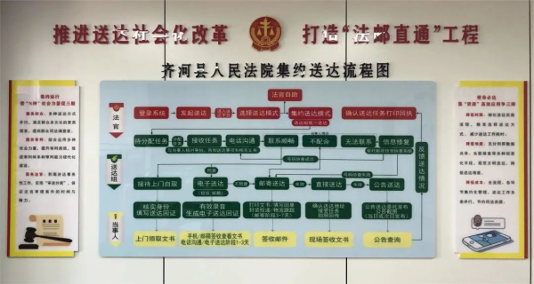 今年以来,齐河法院与邮政公司深度融合,在全省建成首家基层法院“法邮”直通集约送达中心,充分整合司法资源和社会资源,实现法律文书从“自主送达”“分散送达”向“集约高效送达”的转变,不管当事人身在何方,电子送达在几分钟之内就可以完成诉讼材料的送达,且与传统邮寄送达具有相同法律效力,让当事人足不出户即可在手机上签收诉讼文书,真正实现“让数据多跑路、群众少跑腿”,送达质量和效率明显提高,案件平均送达周期缩短至5日,电子送达适用率达80%以上,平均用时1分钟以内,极大缩短了案件审理时间。