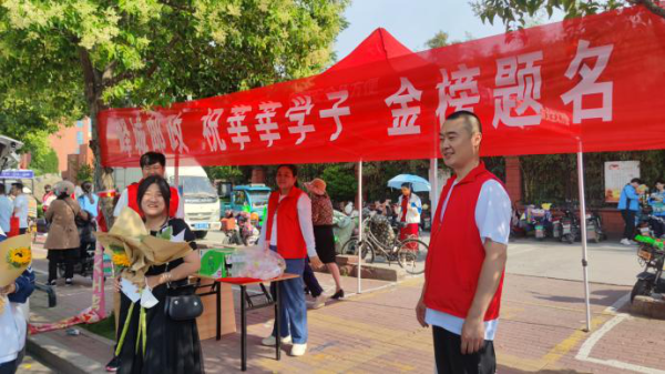 考场外我们加油鼓劲全程护航
