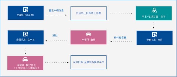 车管所网办中心设置专席,专门办理“机动车线上抵解押”业务,在接收到平台申请后完成审核,签注登记证书,业务办结后将机动车登记证书交邮。