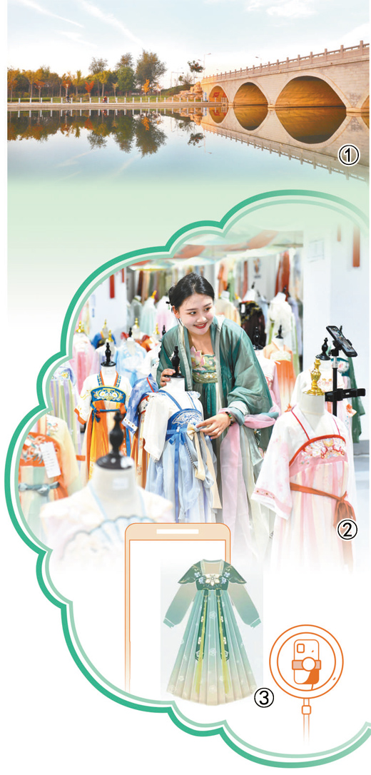 来自山东滨州的游客王安迪,了解到曹县成熟的汉服生产链后,决定来这里看看。“街头巷尾的汉服令人目不暇接,漫步于黄河故道、八里湾、曹县商都博物馆,我看见了这座古城的内涵与灵气,也深深爱上了这座城市。”