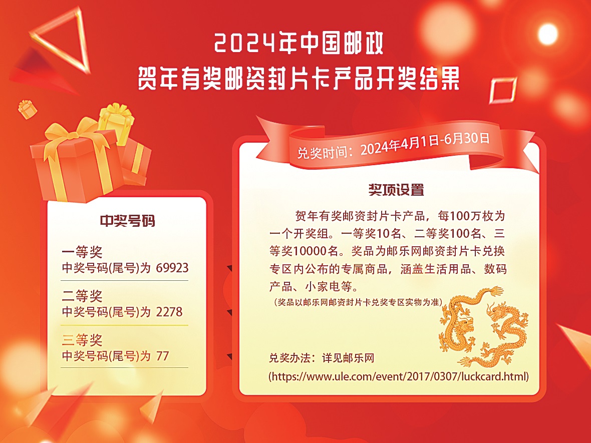 2024年中国邮政贺年有奖邮资封片卡产品开奖结果