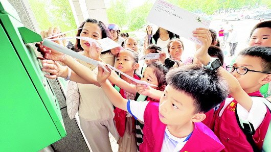 拿着自己亲手写的信,小记者们来到了邮筒前,争先恐后地把信投到邮筒内,希望自己的信件能尽快到达目的地。