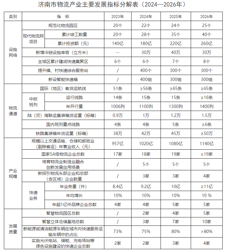 济南市促进物流产业高质量发展三年行动计划