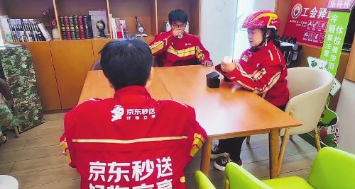 5月21日,北京市金融总工会、北京市邮政分公司、邮储银行北京分行与京东集团携手举办京东外卖全职骑手进驻“邮爱驿站”启动仪式。