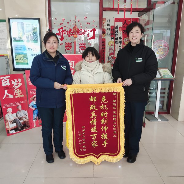 事后,伤者付女士的家属专程来到松林支局表达感谢并送来锦旗,对松林支局员工危难时刻挺身而出、热心救助的行为表示诚恳感谢和高度赞誉。