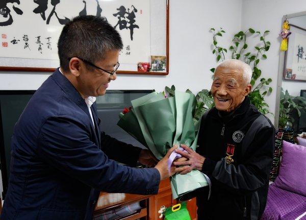 滨州邮政慰问走访人员一行分别来到参加抗美援朝老战士王保义、王居泉、孙克谋,刘绍乐家中,为老同志们送上鲜花和慰问品,向他们致以崇高的敬意和感谢,并为老人颁发纪念章,了解他们的身体和生活情况,祝福他们身体健康,晚年幸福。