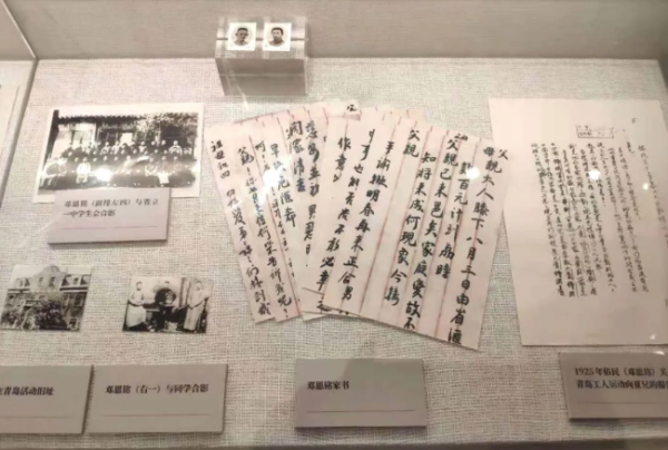 在纪念馆中,有两张有关王尽美、邓恩铭两位中国共产党早期领导人的纪念邮票特别引人注目。
